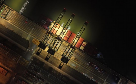 2024年1月16日,大型集装箱班轮“巴赫”号靠泊在天津港太平洋国际集装箱码头(无人机照片)。新华社记者 赵子硕 摄